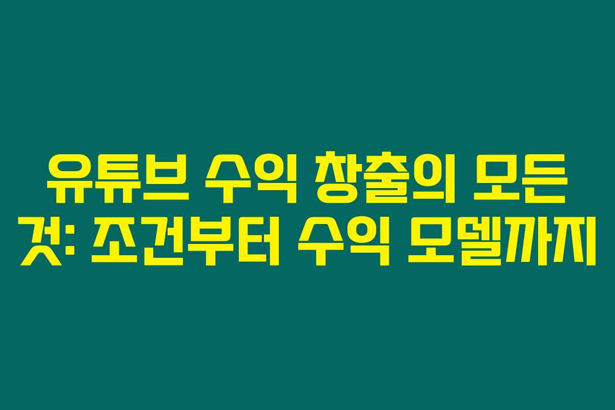 유튜브 수익 창출의 모든 것: 조건부터 수익 모델까지