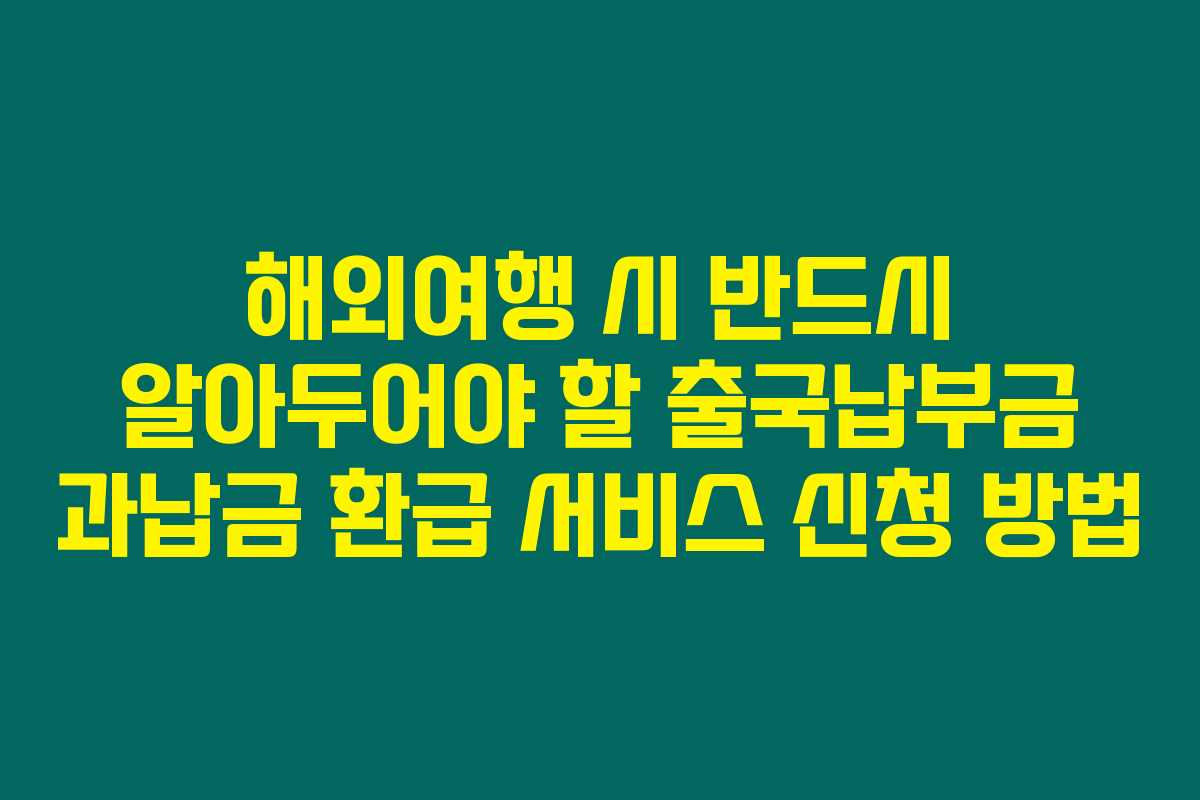 제가 직접 경험해본 결과로는 해외여행을 준비할 때 중요한 요소 중 하나가 바로 출국납부금입니다. 특히, 2024년부터 시행되는 새로운 규정에 따라 과납금 환급이 가능해진 만큼, 해당 정보를 미리 알고 준비하는 것이 정말 중요하답니다. 아래를 읽어보시면 출국납부금 환급 서비스 신청 방법과 필요 사항에 대한 완벽한 가이드를 만나보실 수 있습니다.