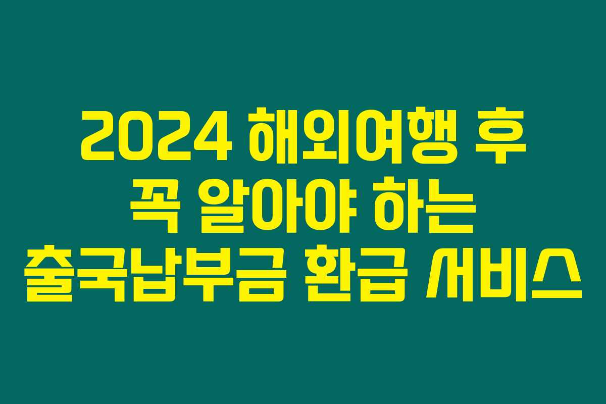해외여행을 다녀오신 분들은 확인해보세요! 2024년에 해외여행을 다녀온 분들에게는 출국납부금 환급이 가능한 숨은 제도가 있습니다. 잠자는 돈을 놓치지 않도록, 최대 1만 원까지 돌려받을 수 있는 기회를 놓치지 말고 확인하세요. 특히 가족 여행을 계획하셨다면, 더욱 유용한 정보가 될 거예요. 아래를 읽어보시면 더 많은 정보를 얻으실 수 있답니다.
