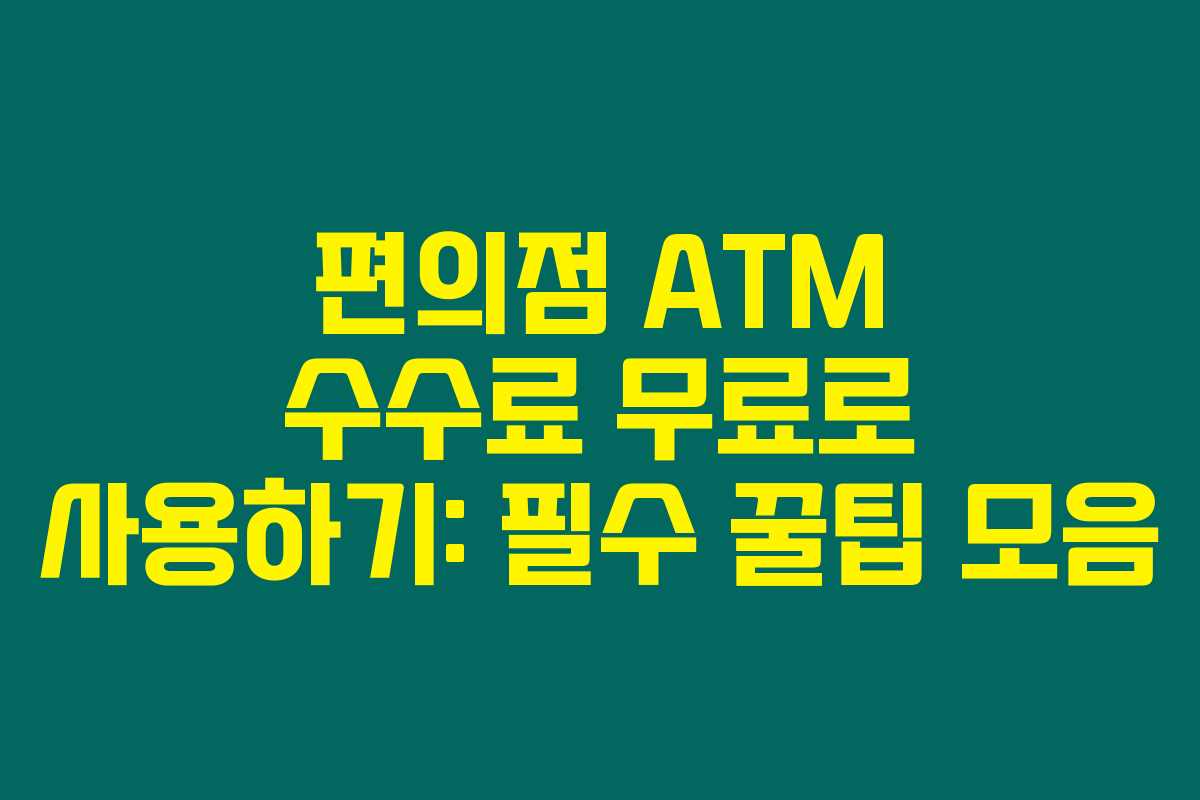 편의점 ATM 수수료 무료 이용을 위한 꿀팁