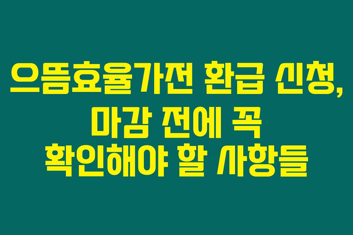 제가 직접 경험해본 결과로는, 으뜸효율가전 환급 사업은 고효율 가전제품을 구입할 때 매우 유용한 제도랍니다. 이 사업을 통해 최대 30만 원까지 환급받을 수 있다니, 가전제품 구매를 계획하고 계신 분들에게 정말 좋은 기회인 것 같습니다. 아래를 읽어보시면 신청 절차와 주의사항, 그리고 저의 팁을 확인하실 수 있습니다.