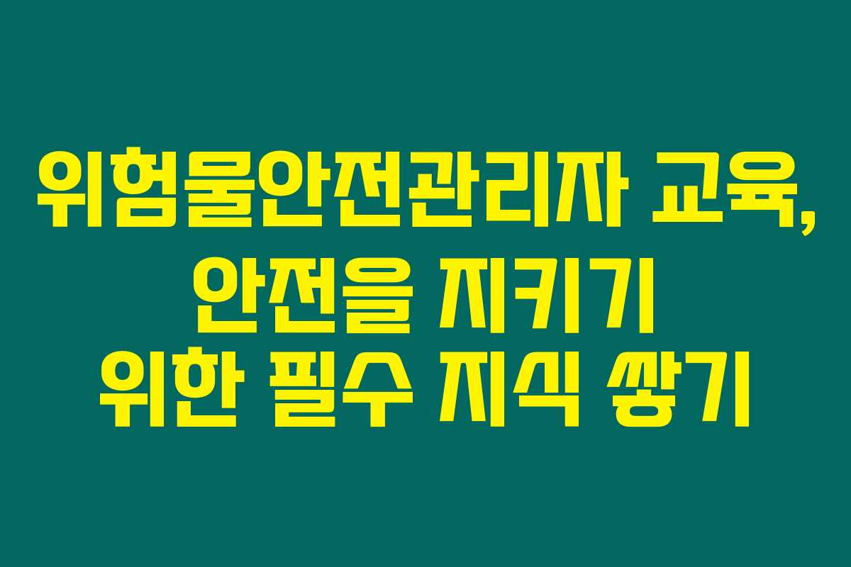 위험물안전관리자는 위험물질의 안전한 취급과 관리를 책임지는 전문가입니다. 화학물질, 가연성 물질 등 다양한 위험 요소를 다루기 때문에 체계적인 교육이 필수지요. 특히, 위험물안전관리자는 사업장 내에서의 안전사고를 예방하는 중요한 역할을 합니다.