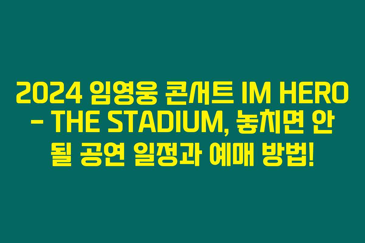 2024년을 맞아 사랑받는 가수 임영웅의 콘서트가 서울에서 개최됩니다. IM HERO – THE STADIUM이라는 이 공연은 그의 팬들에게 잊지 못할 경험을 선사할 것입니다. 아래를 읽어보시면 공연 일정과 티켓 예매 방법에 대한 유용한 정보를 확인할 수 있습니다.