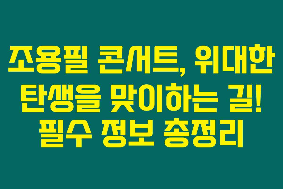 2023년 ‘조용필 위대한탄생 콘서트’는 팬들에게 다시 한번 그 감동을 느낄 수 있는 특별한 기회입니다. 아래를 읽어보시면 콘서트의 기본 정보, 출연진, 티켓팅 예매 방법 등을 포함한 전체 정보를 한눈에 확인하실 수 있습니다.
