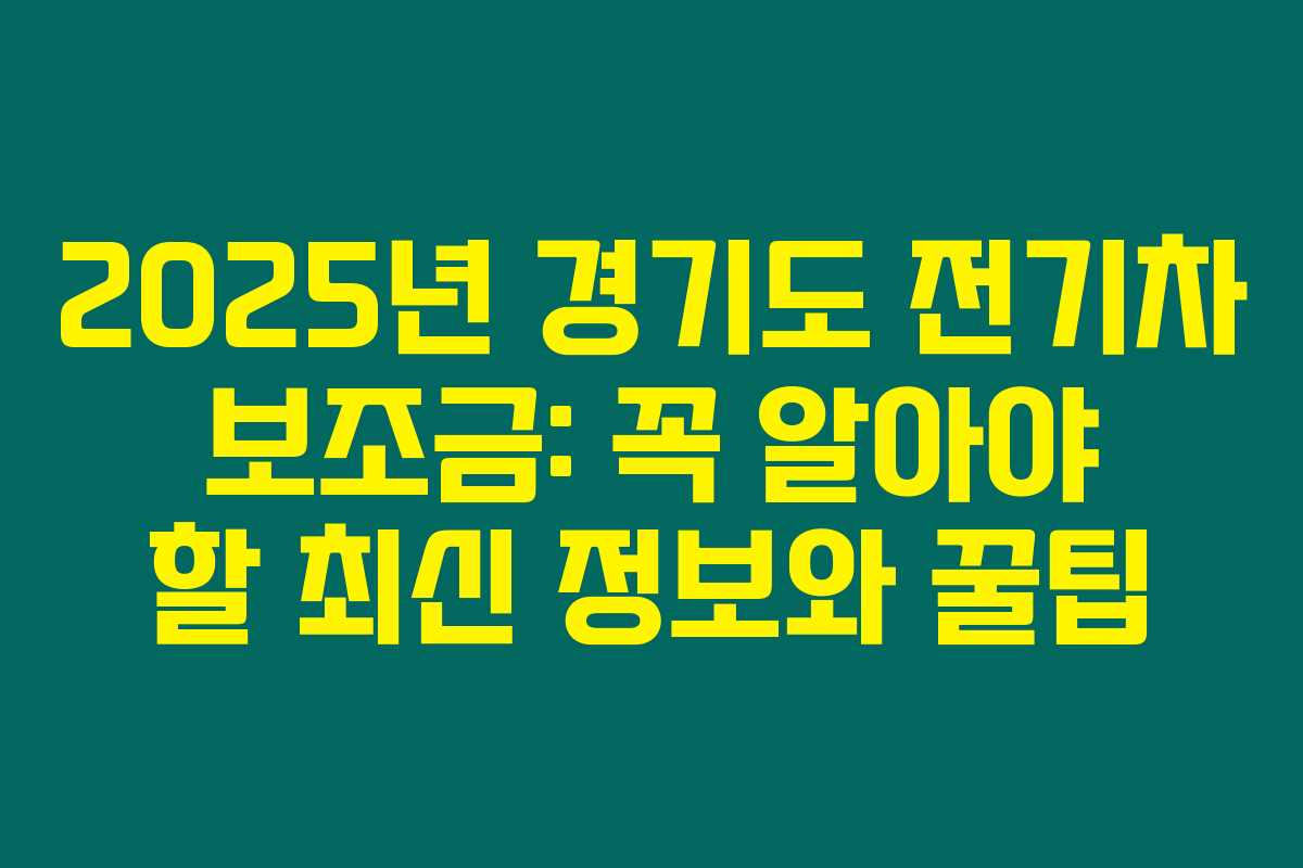 2025년 경기도 전기차 보조금: 꼭 알아야 할 최신 정보와 꿀팁