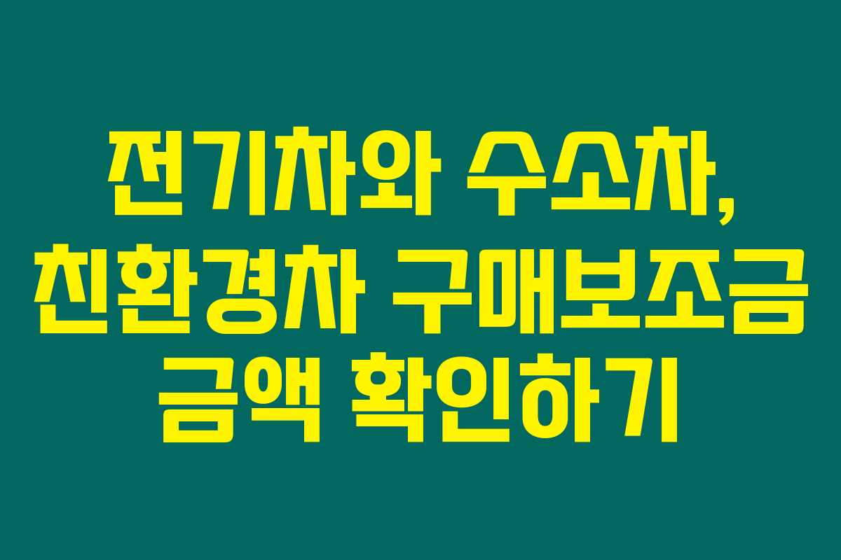 전기차와 수소차 등 친환경차 구매 시, 정부에서 지원하는 보조금이 있다는 사실, 아시나요? 요즘은 환경을 위해 많은 사람들이 전기차를 선택하고 있는데요, 사용하는 모델에 따라 혹은 지역에 따라 지원 금액이 다르기 때문에 정확한 금액을 미리 확인하는 것이 중요해요. 아래를 읽어보시면 전기차, 수소차 친환경차 구매보조금 금액을 확인하는 방법을 상세히 알아볼 수 있습니다.