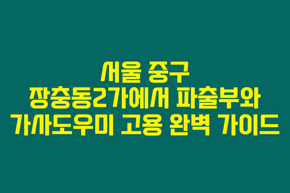 서울 중구 장충동2가는 바쁜 일상 속에서 고품질의 가사 서비스를 필요로 하는 가정이 많은 지역이에요. 이곳에서는 전문적인 가사도우미와 파출부를 통해 보다 쾌적하고 효율적인 생활이 가능하답니다. 아래를 읽어보시면 이 지역의 가사도우미와 파출부 고용을 위한 정보를 총망라해 알아볼 수 있어요.