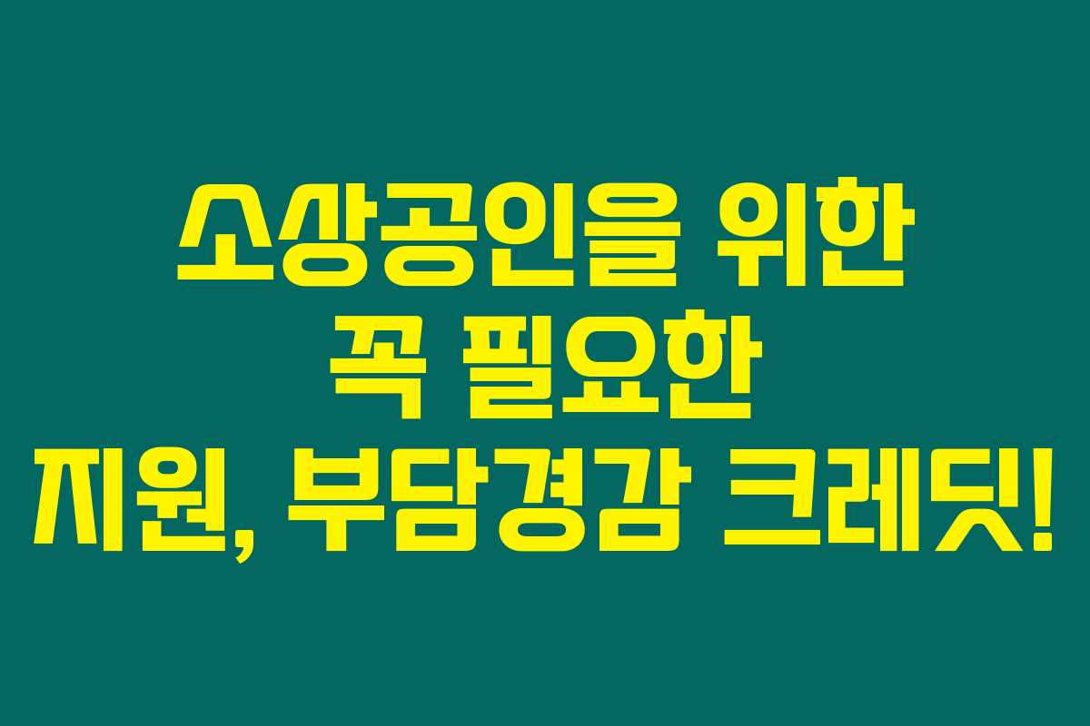 이제 부담경감 크레딧으로 소상공인 여러분의 고정비를 줄여보세요. 간단한 신청으로 실질적인 지원을 받을 수 있으니, 놓치지 말고 꼭 신청하시길 바랍니다. 같은 업계의 친구들에게도 이 정보를 널리 퍼뜨려주세요! 추가적인 소식은 블로그를 통해 계속 확인해주세요.