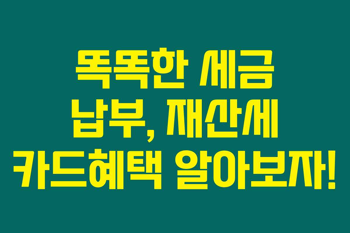 재산세를 스마트하게 납부할 수 있는 방법이 궁금하시죠? 카드 결제로 절세는 물론 다양한 혜택을 누릴 수 있습니다. 아래를 읽어보시면, 재산세 카드혜택과 어떤 카드가 유리할지에 대한 정보를 확인할 수 있습니다.