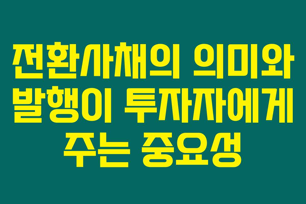 전환사채의 의미와 발행이 투자자에게 주는 중요성
