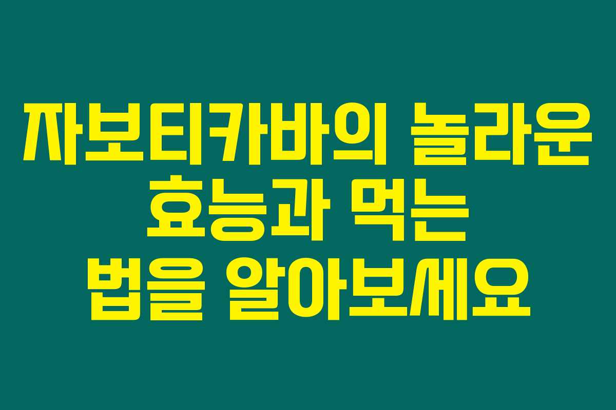 자보티카바를 처음 들어보신 분이라면 궁금하실 겁니다. ‘자보티카바는 과연 어떤 효능이 있고 어떻게 먹어야 할까요?’ 자보티카바에 대한 정보는 여러 곳에서 나오지만 제 경험을 바탕으로 정리해드리려 해요. 건강에 관심 많은 분들이라면 반드시 주목해야 할 내용이랍니다. 아마 자보티카바에 대해 알고 나면 한 번 맛보고 싶어질 거예요.