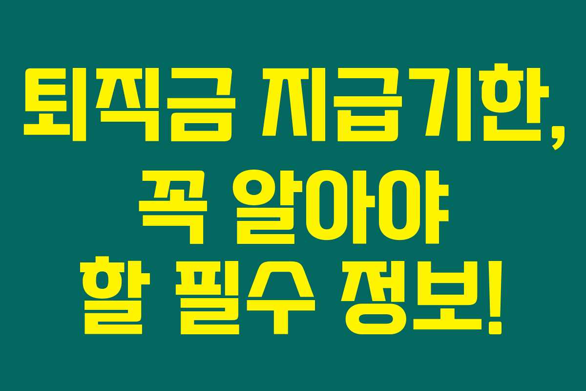 퇴직하면 퇴직금을 받을 수 있을까요? 이 질문은 많은 이들이 고민하는 내용이랍니다. 퇴직금 지급기한에 대해 잘 모르고 있다면, 꽤 오랜 기간 동안 짐이 될 수 있어요. 그래서 아래를 읽어보시면 퇴직금 지급기한에 대한 유용한 정보를 알아두실 수 있을 거예요!