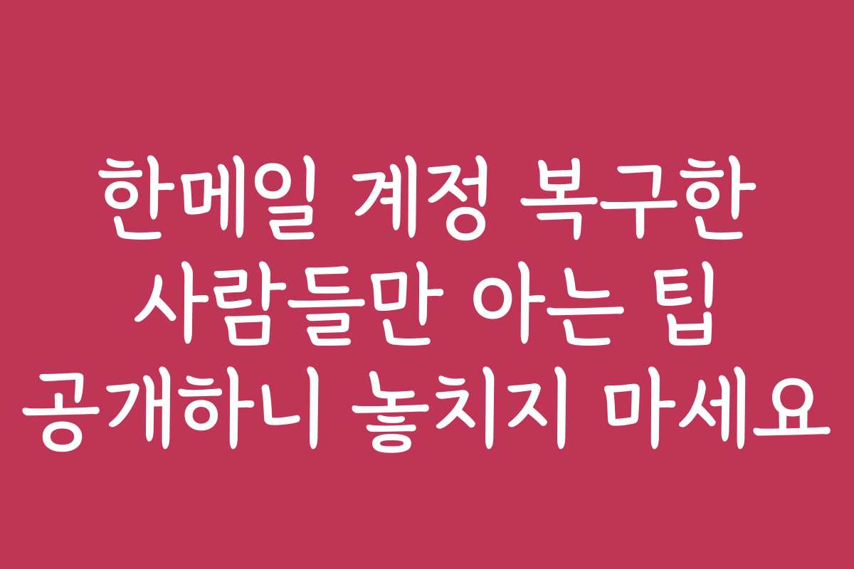 한메일 계정 복구한 사람들만 아는 팁 공개하니 놓치지 마세요