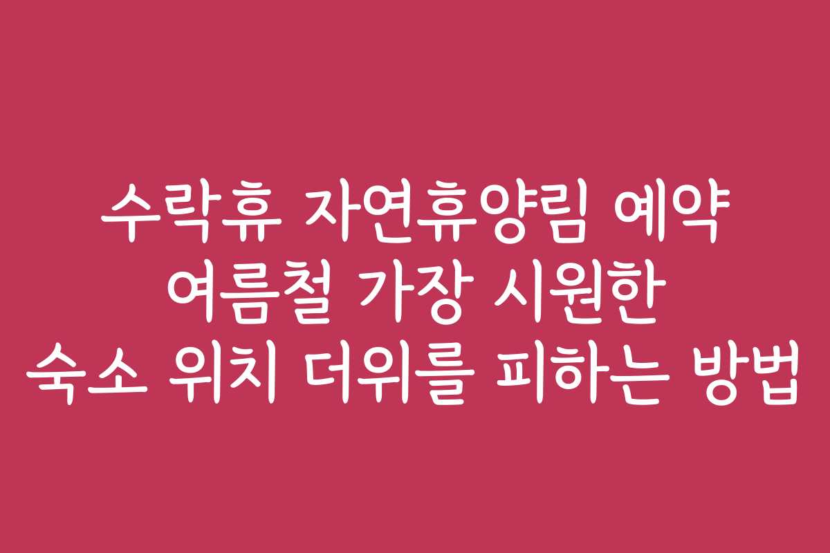 여름철 더위, 더 이상 참지 마세요! 수락휴 자연휴양림에서 여름을 시원하게 보내는 방법은 무엇일까요? 이 글에서는 수락휴 자연휴양림 예약 방법과 가장 시원한 숙소 위치, 그리고 더위를 피하는 실질적인 팁을 소개합니다.