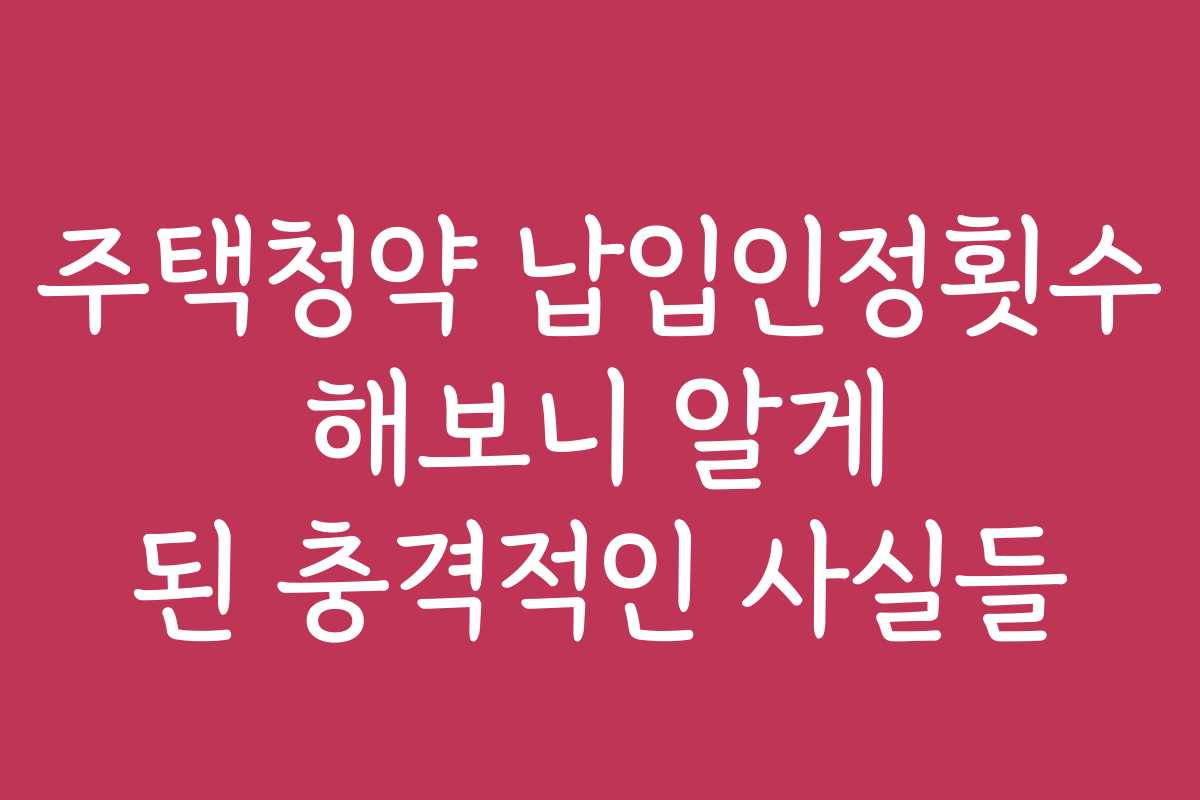 주택청약을 생각하고 계신가요? 납입인정횟수에 대해 알아보다가 충격적인 사실들을 발견했습니다. 주택청약 납입인정횟수는 단순한 숫자 이상의 의미를 가지고 있었습니다. 아래를 읽어보시면 이 사실을 어떻게 활용할 수 있는지 알게 될 것입니다.
