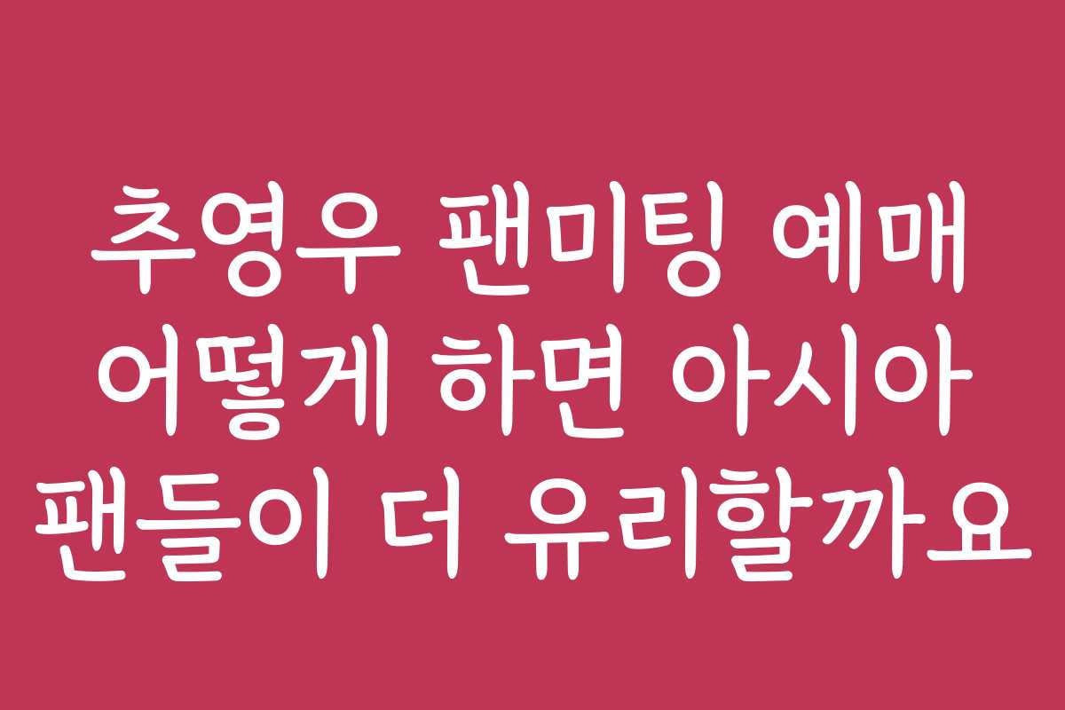 추영우, 팬미팅, 예매, 아시아 팬, 전략, 후기, 팁, 방법, 비교, 이벤트, 문화
