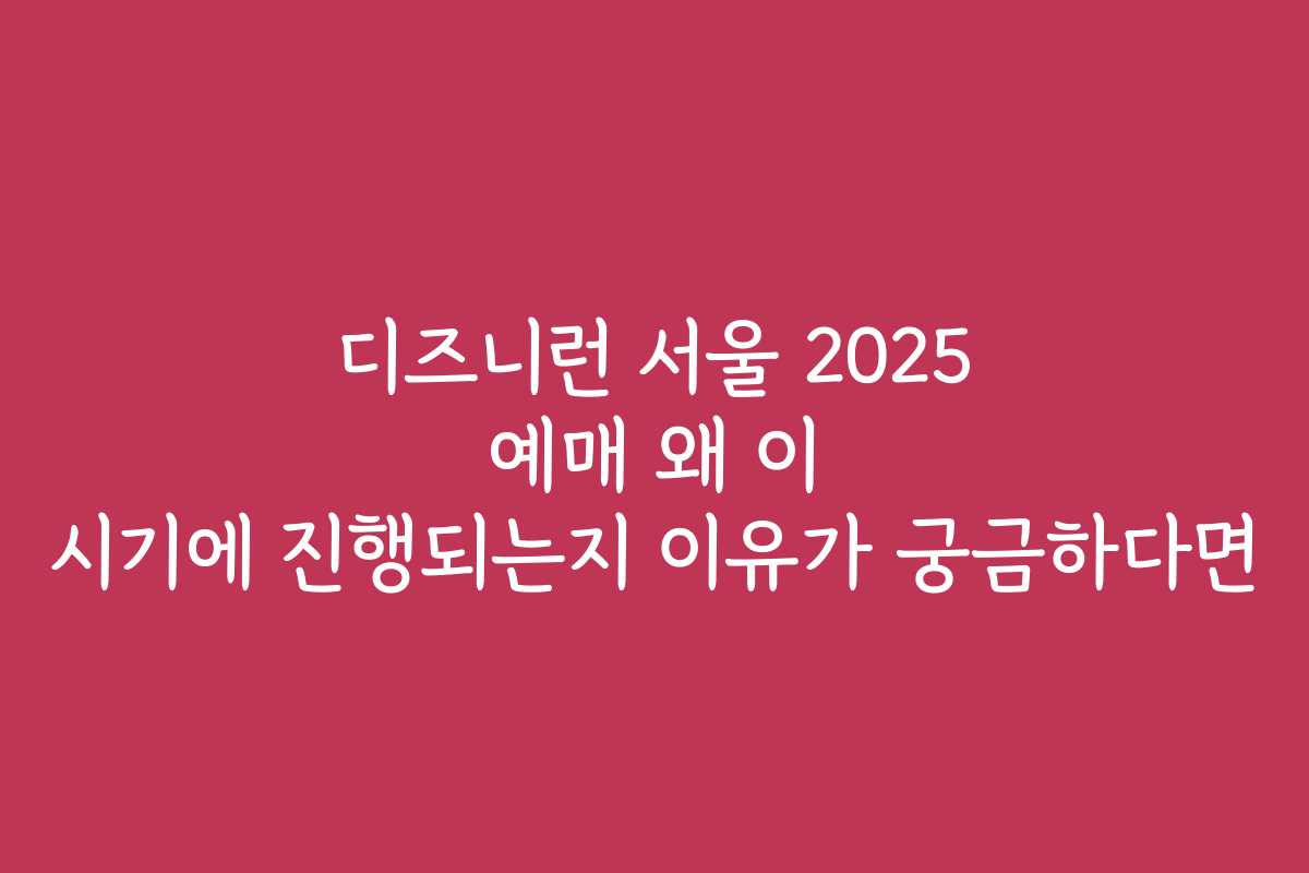 디즈니런 서울 2025 예매가 왜 이 시기에 진행되는지 궁금하다면?