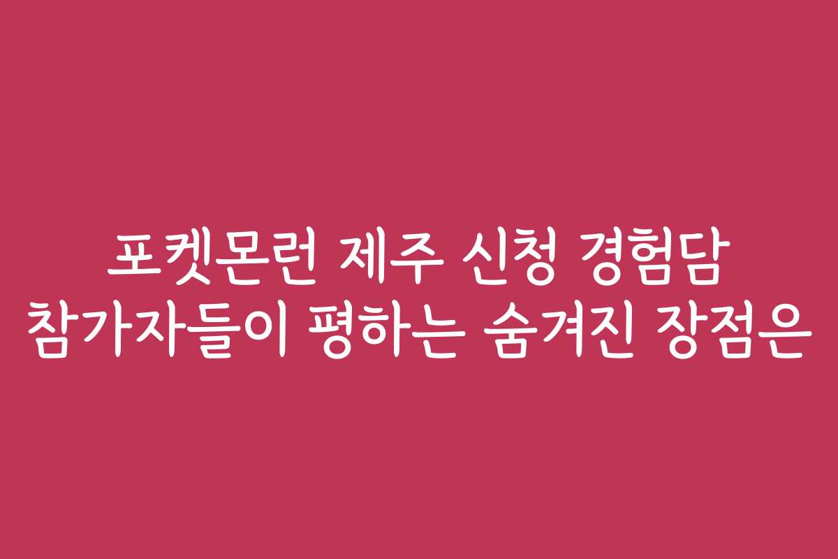 핵심·연관 키워드: 포켓몬런, 제주, 신청, 경험담, 참가자, 후기, 비용, 꿀팁, 추천, 장점, 비교