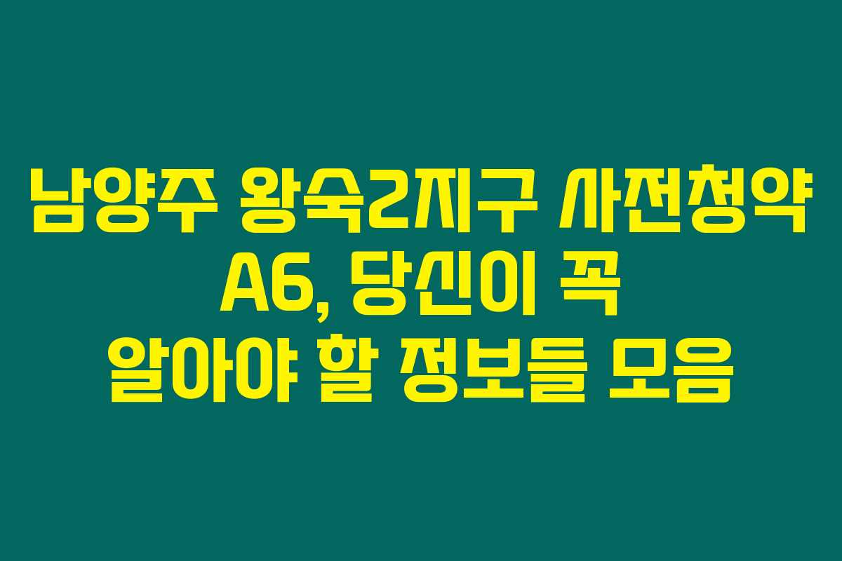 남양주 왕숙2지구 사전청약 A6 블록에 대해 궁금하신가요? 만약 당신이 이 아파트에 청약을 고려하고 있다면 아래를 꼭 읽어보세용. 이 글에서는 남양주 왕숙2지구 A6 공공분양가, 청약 자격, 아파트 시세 및 평면도까지 자세하게 소개할게요.