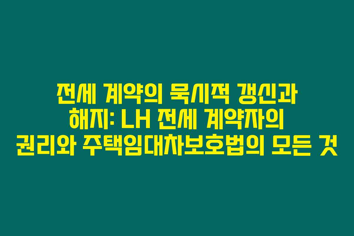 전세 계약을 하고 있는 분들이라면 계약 갱신과 해지가 얼마나 중요한지 잘 알고 계실 거예요. 특히 한국토지주택공사(LH)와의 계약에 있어서 법적 권리를 정확히 이해하는 것이 중요해요. 전세 계약에서 묵시적 갱신과 해지에 대한 법적 측면을 알아보면, 여러분의 권리를 지킬 수 있는 힘이 될 거예요. 여기에 대해 궁금하시면 아래를 읽어보세요.