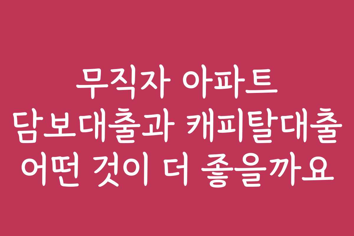 핵심키워드: 무직자 아파트 담보대출, 캐피탈대출, 대출 비교, 대출 선택, 금융 상담, 저금리 대출, 재정 계획, 자산 가치, 대출 신청, 신용도, 자산 담보