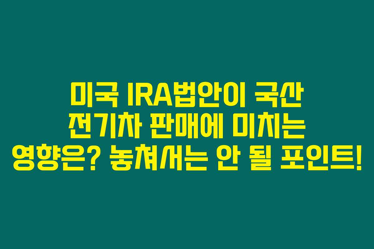 미국 IRA법안에 따른 변화가 국산 전기차 판매에 어떤 변화를 가져올지 궁금하신가요? 전기차 보조금 정책이 어떻게 변했는지 이해하고 이로 인해 발생할 문제를 미리 파악하는 것이 중요합니다. 아래를 읽어보시면 현재의 동향과 미래의 변화를 쉽게 이해할 수 있으니 꼭 확인해보세요!