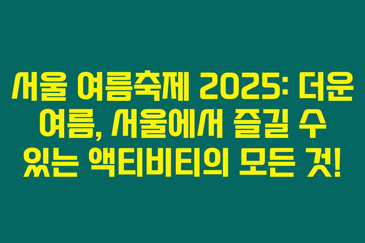 여름이 다가오고 있죠? 뜨거운 햇살 아래에서 뭘 할지 고민이라면 2025 서울 여름축제 일정을 체크해야 해요. 서울이라는 도시에서 펼쳐지는 다양한 축제들이 여러분을 기다린답니다. 멀리 가지 않아도 시원한 물놀이와 신나는 공연으로 여름을 만끽할 수 있어요. 아래를 읽어보시면, 여러분의 여름 나들이 계획에 큰 도움이 될 거예요!