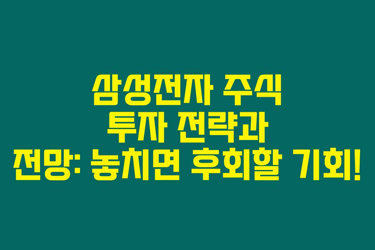 삼성전자 주식을 구매하거나 보유하고 계신다면 고려해야 할 여러 가지 투자 전략이 있어요.