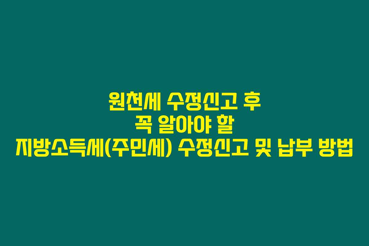 원천세 수정신고를 한 적이 있으신가요? 원천세 수정신고를 하고 난 뒤 가장 먼저 떠오르는 고민 중 하나는 바로 지방소득세(주민세) 수정신고에 관한 부분이에요. 원천세 수정신고는 간단해 보이지만 주민세는 다소 복잡하게 느껴지죠. 지방소득세 수정신고와 납부를 제대로 이해하고 계신가요? 혹시 이 과정에서 헷갈리셨다면 아래를 읽어보시면 이제 간단하게 해결할 수 있을 거예요.