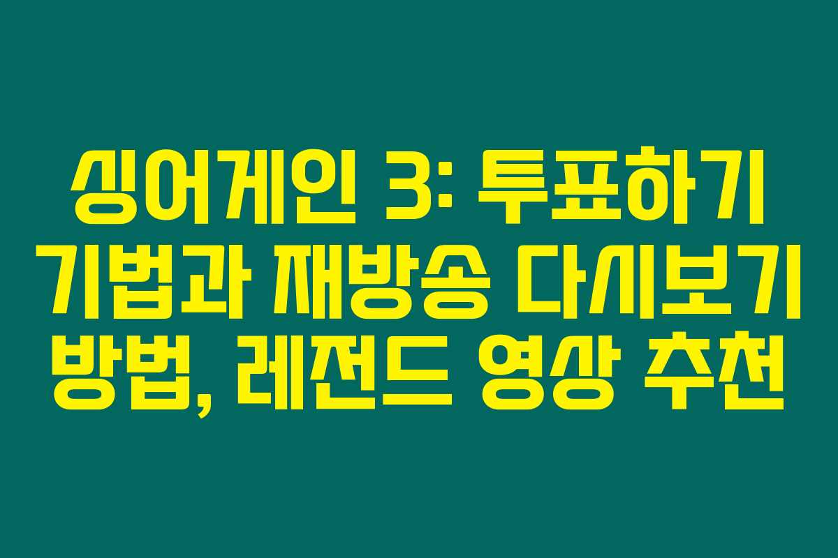 JTBC의 인기 오디션 프로그램 싱어게인 3가 드디어 돌아왔어요. 프로그램의 시작과 함께 많은 팬들이 점점 더 기대감을 높이고 있는데요. 이번 글에서는 싱어게인 3의 투표하기 방법과 재방송 다시보기 방법, 그리고 레전드 영상에 대한 정보를 자세히 알아볼게요. 혹시 싱어게인 3에 대한 정보가 궁금하다면 아래를 읽어보시면 많은 도움 될 거예요.