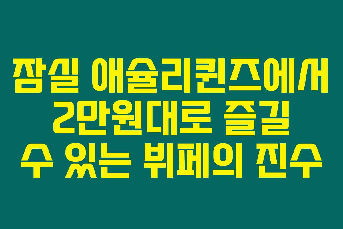 혹시 2만원대라는 가격에 고급스러운 뷔페를 찾고 계시다면, 애슐리퀸즈 잠실을 주목해보세요. 뷔페를 사랑하는 분이라면, 이곳에서 어떤 특별한 경험을 할 수 있는지 궁금하시죠? 체험한 내용과 솔직한 후기를 아래를 읽어보시면 알아보실 수 있어요.