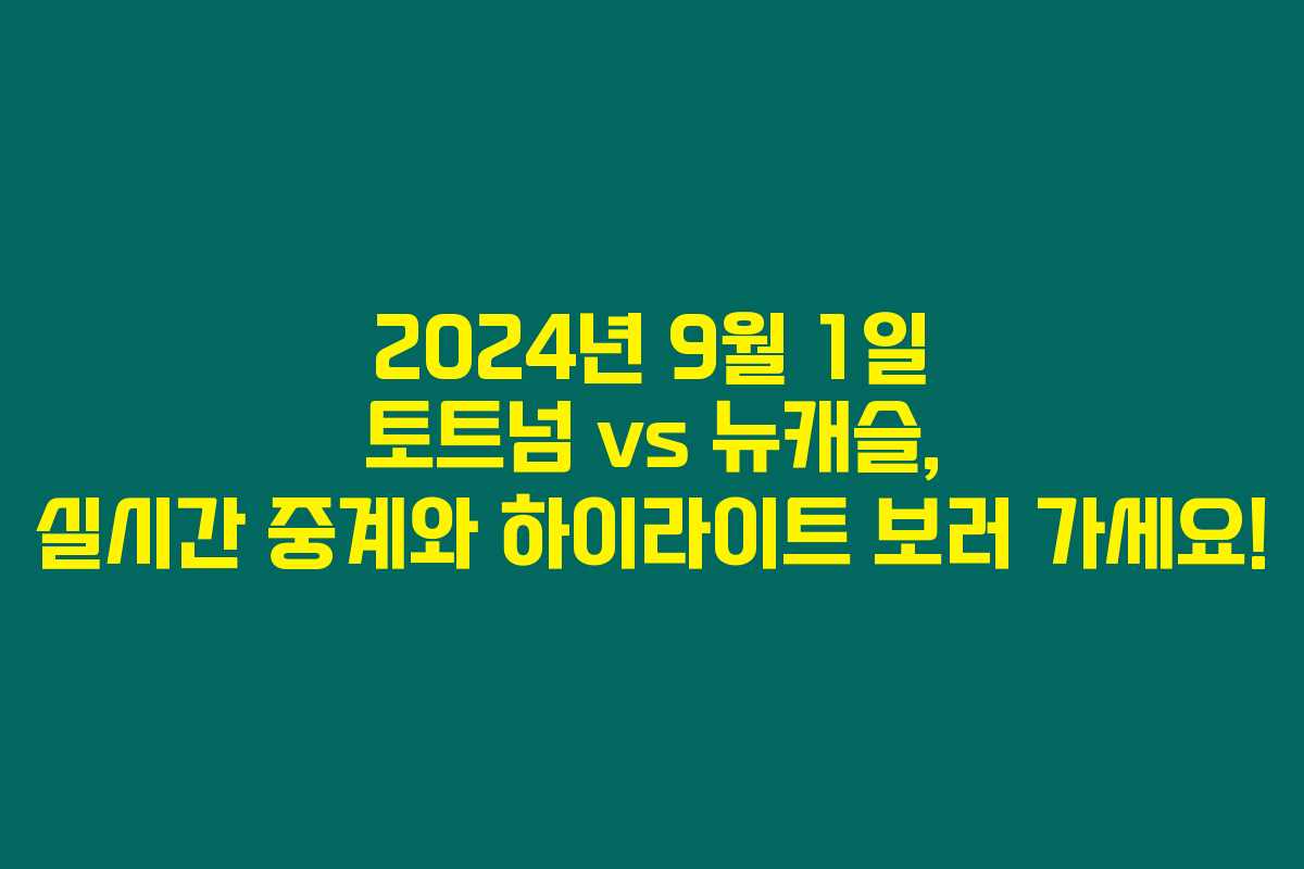 2024년 9월 1일에 펼쳐질 토트넘과 뉴캐슬의 빅매너, 놓치고 있는 분들 없나요? 이번 경기는 축구 팬이라면 절대 빼놓을 수 없는 중요한 경기가 될 거예요. 손흥민 선수의 멋진 플레이를 가까이서 보고 싶다면 아래를 읽어보시면 실시간 중계 방법과 하이라이트까지 모두 확인할 수 있습니다.