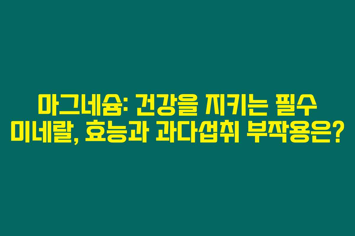 마그네슘의 소중함을 잘 알고 있다고 해도, 혹시 과다 섭취 시 부작용을 간과하고 계신 건 아닌가요? 마그네슘을 적절히 섭취하는 건 정말 중요한 일이거든요. 그렇다면 이 글에서는 마그네슘의 효능부터 과다섭취의 위험성까지 자세히 알려드릴게요!