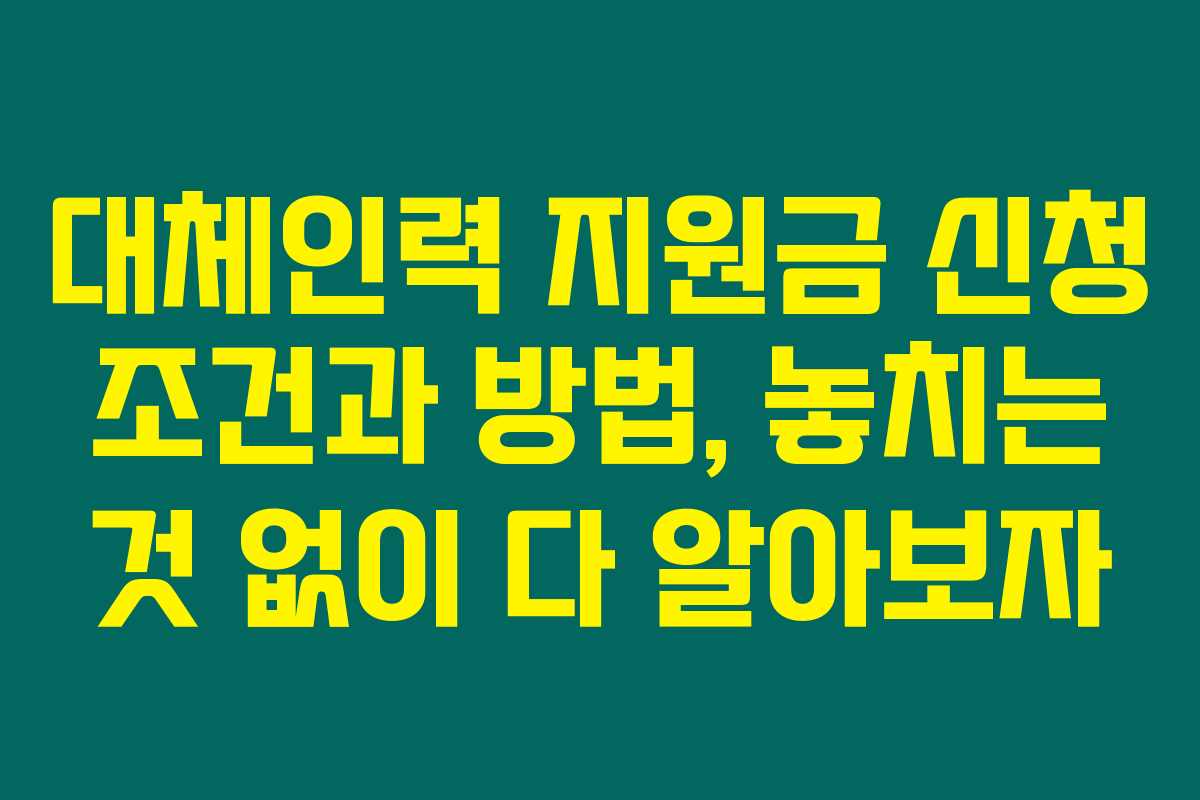 자 이제까지 대체인력 지원금의 조건과 신청 방법, 주의할 점까지 모두 살펴보았어요. 이 지원금을 통해 더 많은 근로자가 대체인력을 효율적으로 활용하실 수 있답니다. 혹시 더 궁금한 점이 있다면 언제든지 질문해 주세요!