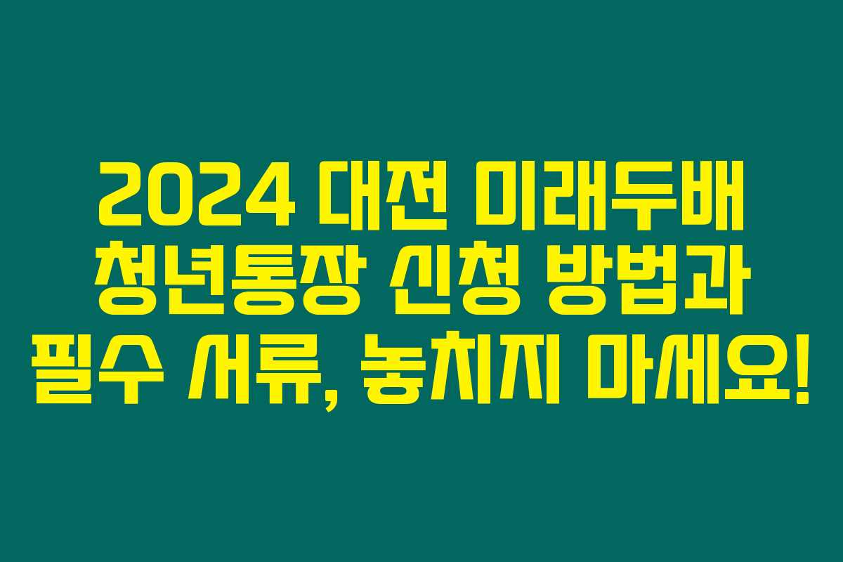 미래에 대한 확실한 투자! 대전 미래두배 청년통장으로 여러분의 꿈을 실현해보세요. 이 기회를 놓치면 후회할지도 모르니까요!