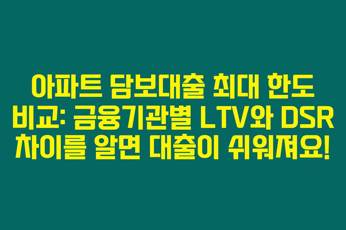 여러분이 아파트 담보대출의 최대 한도를 비교할 때 꼭 필요한 정보들을 정리해봤어요. LTV와 DSR을 확인해가며 여러분에게 가장 적합한 대출을 찾아보세요! 절대 놓치지 말아야 할 좋은 기회입니다. 궁금한 점은 언제든지 문의해주시면 친절하게 도와드릴게요.