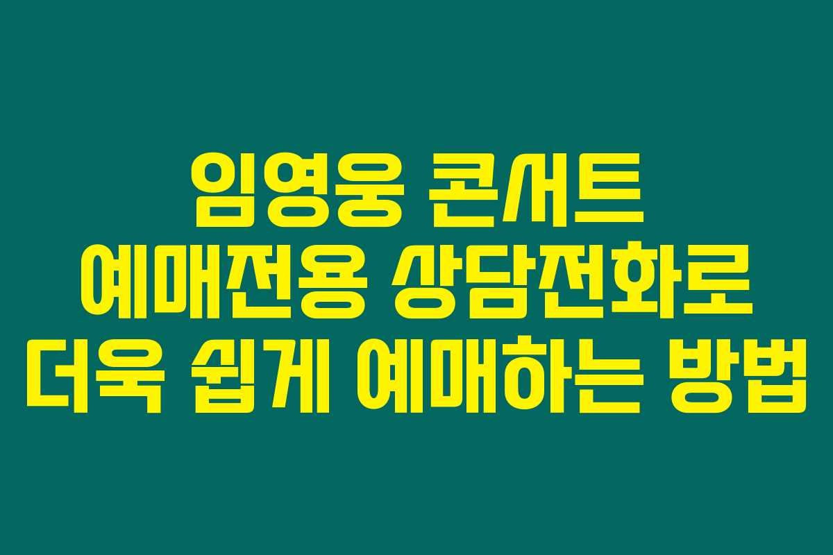 임영웅의 콘서트를 기다리고 계신가요? 그러면 아래 내용을 주목해주세요! 예매에 관한 어려움이나 궁금증이 있다면 임영웅 콘서트 예매전용 상담전화가 큰 도움이 될 거예요. 이 가이드를 통해, 예매 순서 및 일정에 대해 쉽게 이해해보세요.