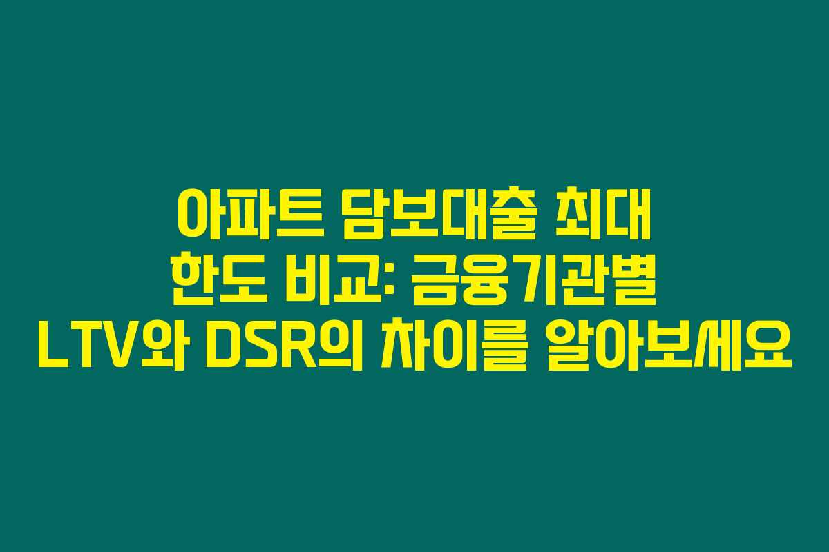 아파트 담보대출을 이용할 때 LTV와 DSR의 명확한 이해가 도움이 될 거에요. 여러 금융기관의 조건을 비교한 후 자신의 상황에 맞는 최적의 대출 전략을 세워보세요. 여러분의 대출 여부와 조건이 정말 달라질 수 있답니다! 필요하신 사항이 있다면 언제든지 문의해 주세요!