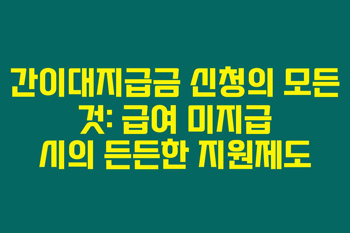 근로자로서 급여를 제때 받지 못하는 경험, 정말 피할 수 있다면 좋겠죠? 간이대지급금 신청 제도를 활용하면 재정적인 어려움을 손쉽게 해결할 수 있습니다. 아래를 읽어보시면 이 제도의 신청 방법과 절차, 중요 사항을 모두 알게 될 거예요!