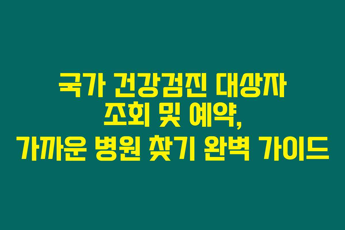 건강검진 대상자 조회 및 예약, 근처 병원 찾기를 통해 여러분의 건강을 지키시길 바라며, 이 정보가 도움이 되었길 바랍니다!