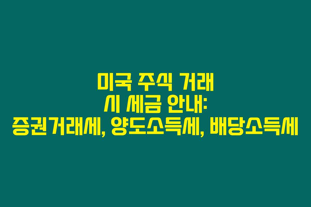 미국 주식에 투자하는 많은 사람들이 매력적인 수익을 기대하지만, 세금 문제는 놓치기 쉬운 부분이에요. 이 글에서는 미국 주식 거래 시 발생하는 주요 세금인 증권거래세, 양도소득세, 배당소득세에 대해 간단히 설명하니, 아래를 읽어보시면 투자 결정을 내리는 데 큰 도움이 될 거예요.