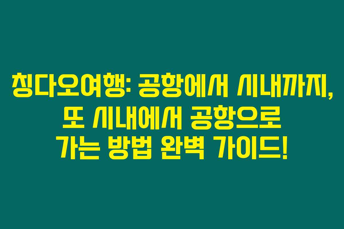 칭다오 여행에서 공항과 시내 이동이 궁금하셨다면, 이제 이 글로 모든 답을 얻으셨길 바랍니다. 공항에서부터 시내까지, 그리고 다시 공항으로 돌아오는 모든 과정이 무사히 진행되길 바라요!