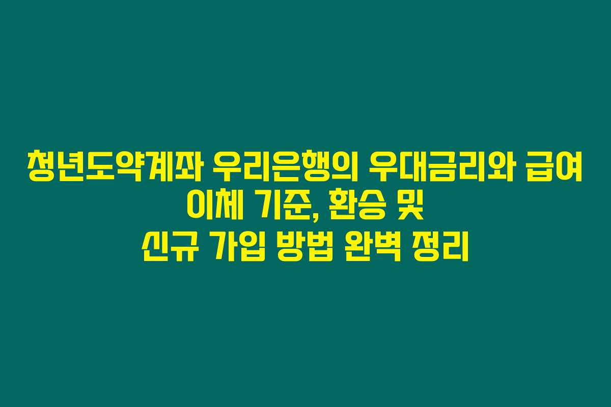 청년도약계좌의 우대금리와 신청 방법은 여러분에게 큰 혜택이 될 수 있습니다. 다양한 조건을 활용하여 최대의 금리를 받고, 재테크에 성공하시길 바랍니다!