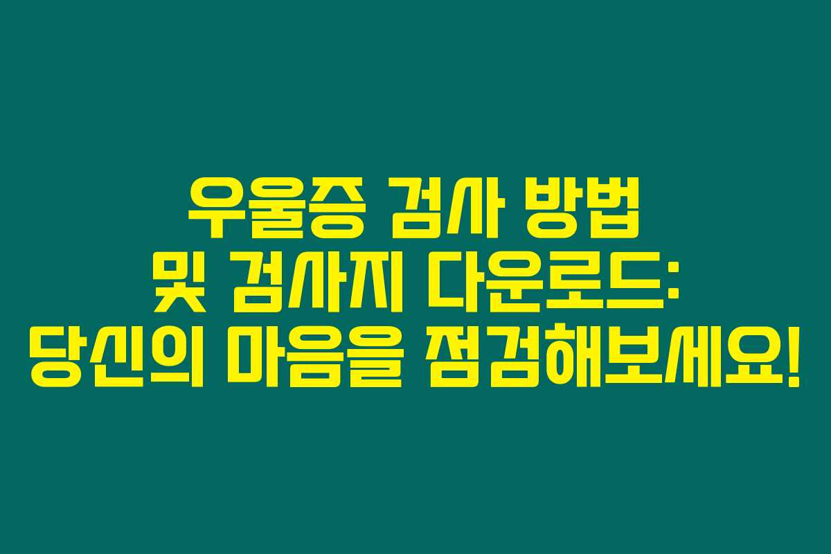 우울증은 현대 사회에서 많은 사람들이 겪는 심리적 문제 중 하나입니다. 많은 분들이 걱정하고 있는 우울증, 당신도 특별할 것 없이 우울증을 점검해볼 필요가 있을 수 있어요. 오늘 이 글을 통해 다양한 우울증 검사 방법과 검사지 다운로드 방법을 알아보도록 하겠습니다. 아래를 읽어보시면, 지금 바로 당신의 마음 상태를 점검할 수 있는 기회를 가질 수 있을 거예요!