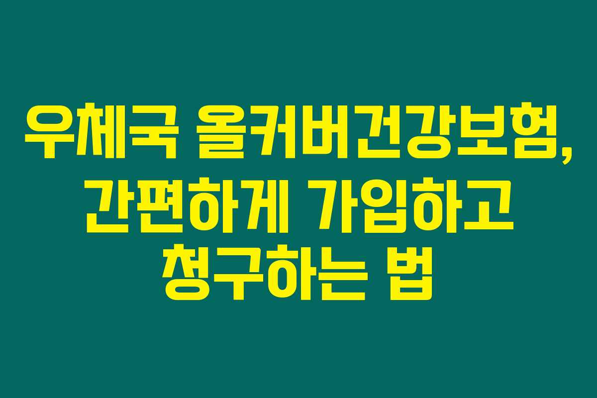 우리의 건강은 소중한 자산이에요. 이 건강을 지키기 위해 보험 가입은 선택이 아닌 필수죠. 우체국의 올커버 건강보험은 다양한 보장을 통해 경제적인 안정감을 제공하는 상품입니다. 아래를 읽어보시면 복잡할 것 같은 가입 방법과 청구 절차를 쉽고 간단하게 정리해드릴게요!