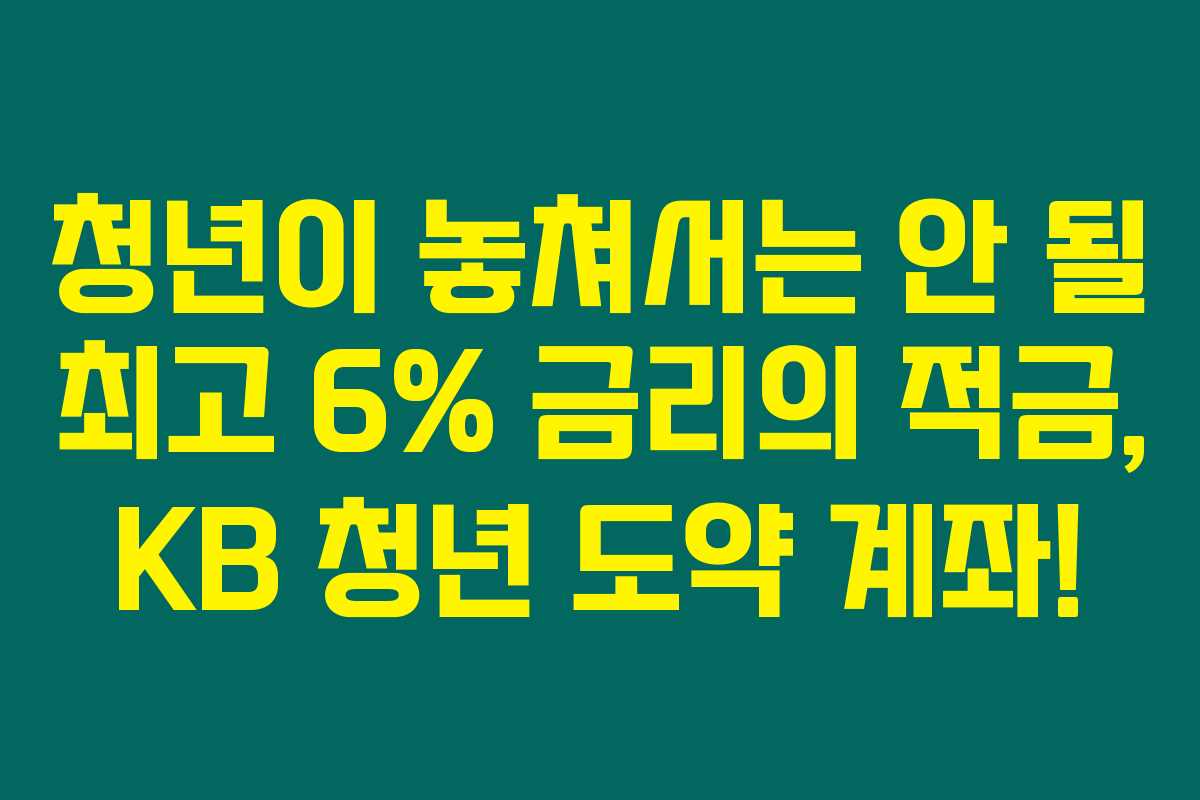 KB 청년 도약 계좌를 통해 최대 6%의 금리를 받을 수 있습니다! 다양한 우대금리 조건에 대해 알아보겠습니다.
