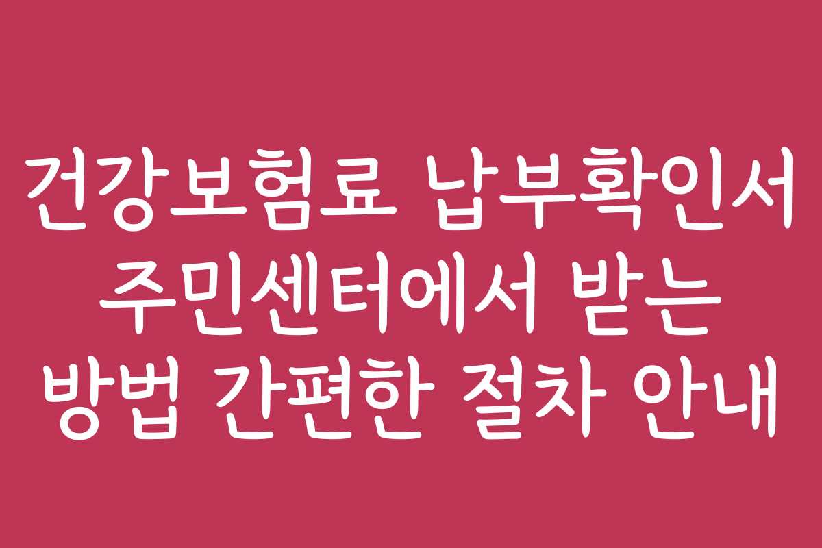 건강보험료 납부확인서 주민센터에서 받는 방법 간편한 절차 안내