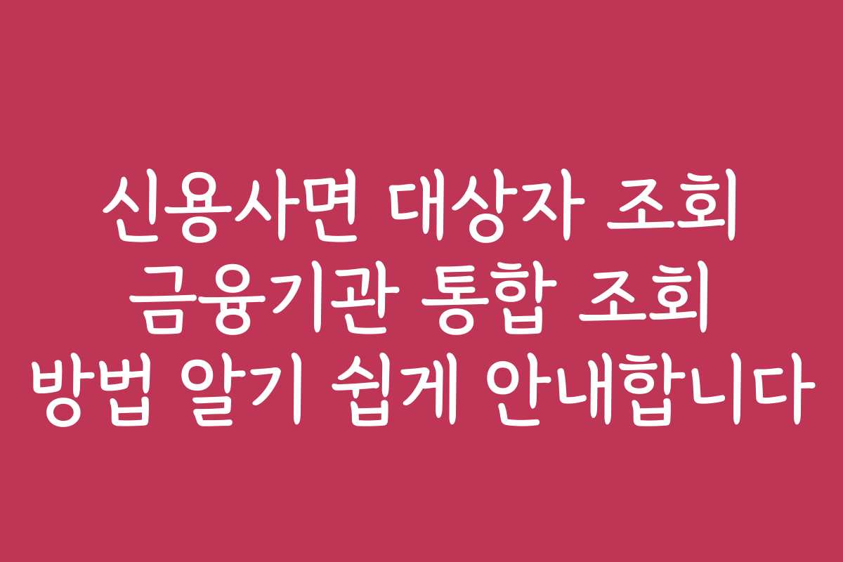 신용사면 대상자 조회는 여러 금융기관을 통합해서 확인할 수 있는 방법을 통해 가능합니다. 다양한 방법이 있지만, 가장 효율적인 방법은 웹사이트나 모바일 애플리케이션을 활용하는 것입니다.