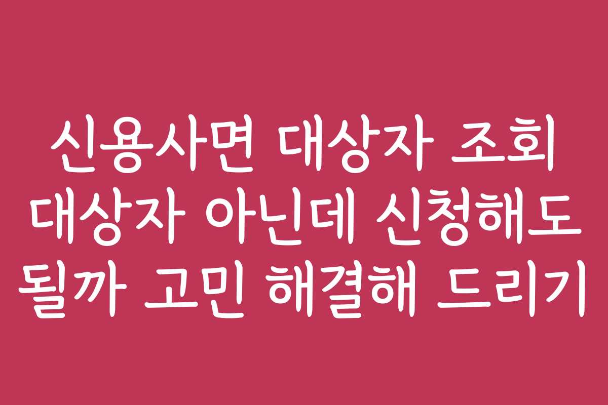 신용사면 대상자 조회 대상자 아닌데 신청해도 될까 고민 해결해 드리기