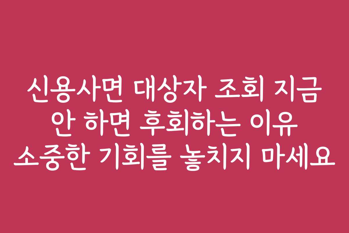 신용사면 대상자 조회 지금 안 하면 후회하는 이유 소중한 기회를 놓치지 마세요